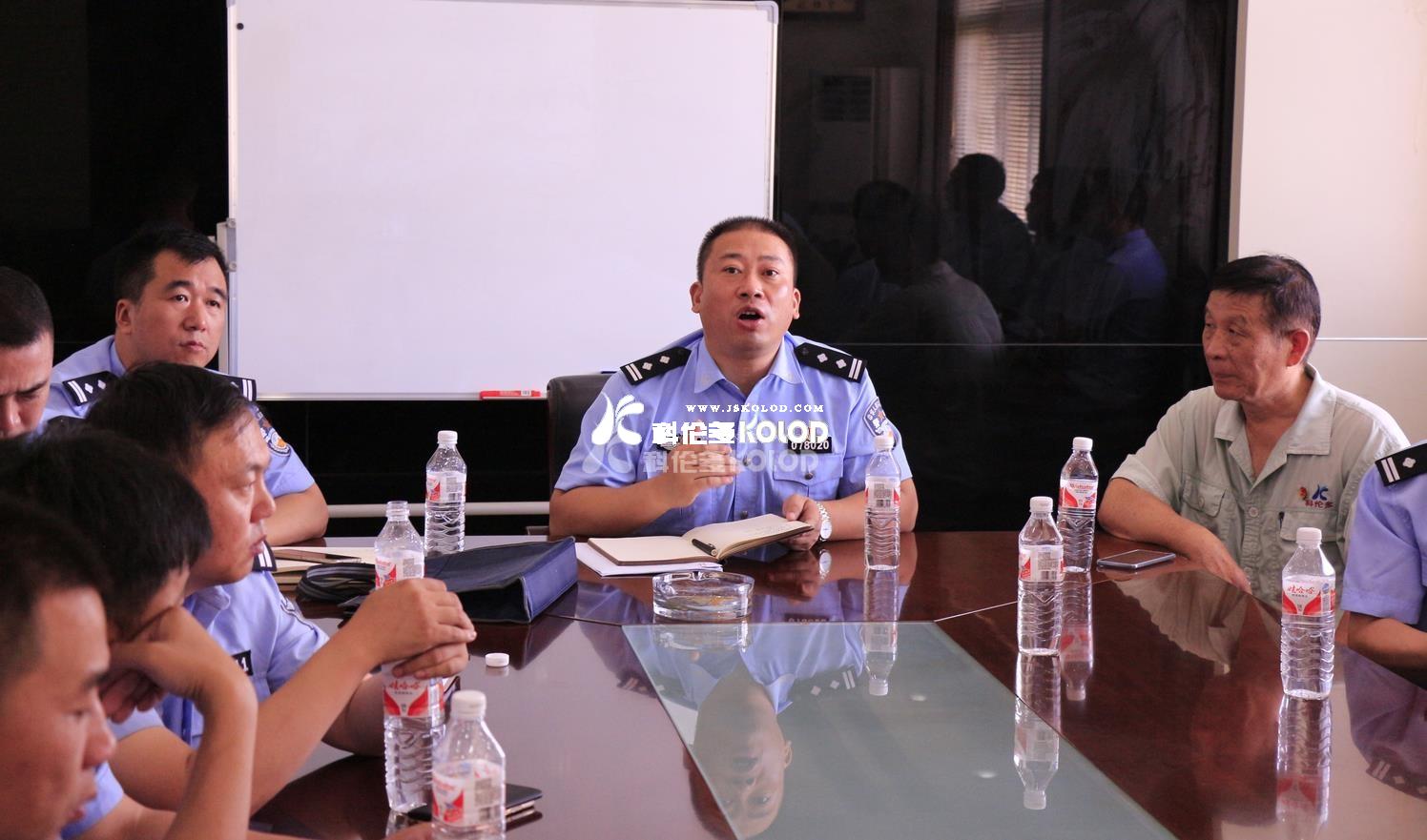 2018年7月17日上午,灌云縣公安局副局長王洪進帶領各鄉鎮、街道派出所所長及縣消防大隊人員一行20余人,蒞臨江蘇科倫多參觀學習灌云縣企事業單位內部保衛服務平臺的使用方法和使用效果,公司黨支部書記楊從智代表公司向前來參觀的公安干警介紹了近幾年公司的經濟發展、安全生產及企業文化簡況;安環部徐鴻茹在七車間監控點現場,向各位干警進行如何對內部保衛監控點實施監控的示范講解;最后,在二樓會議室由安環部部長徐霞明以ppt的形式,向所有領導詳細介紹了如何使用灌云縣企事業單位內部保衛服務平臺以及取得哪些成效的相關情況。圖為灌云縣公安局領導蒞臨公司參觀學習時的場景。